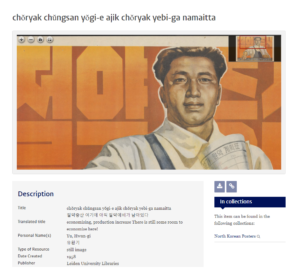 A couple months ago, I was invited to participate in a workshop on North Korean posters organized by Prof. Koen de Ceuster at Leiden University in the Netherlands. The posters came from the private collection of Willem van der Bijl, a Utrecht-based stamp dealer, who had been purchasing North Korean posters regularly for over a decade. Prof. de Ceuster had arranged to get the posters digitalized and they are now available as part of Leiden University’s Digital Collections. Access to the collection currently still requires an account, but this might change in the future.