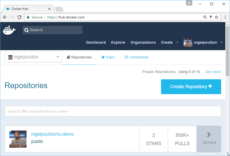 Be sure to substitute nigelpoulton with your own Docker ID in the steps below.