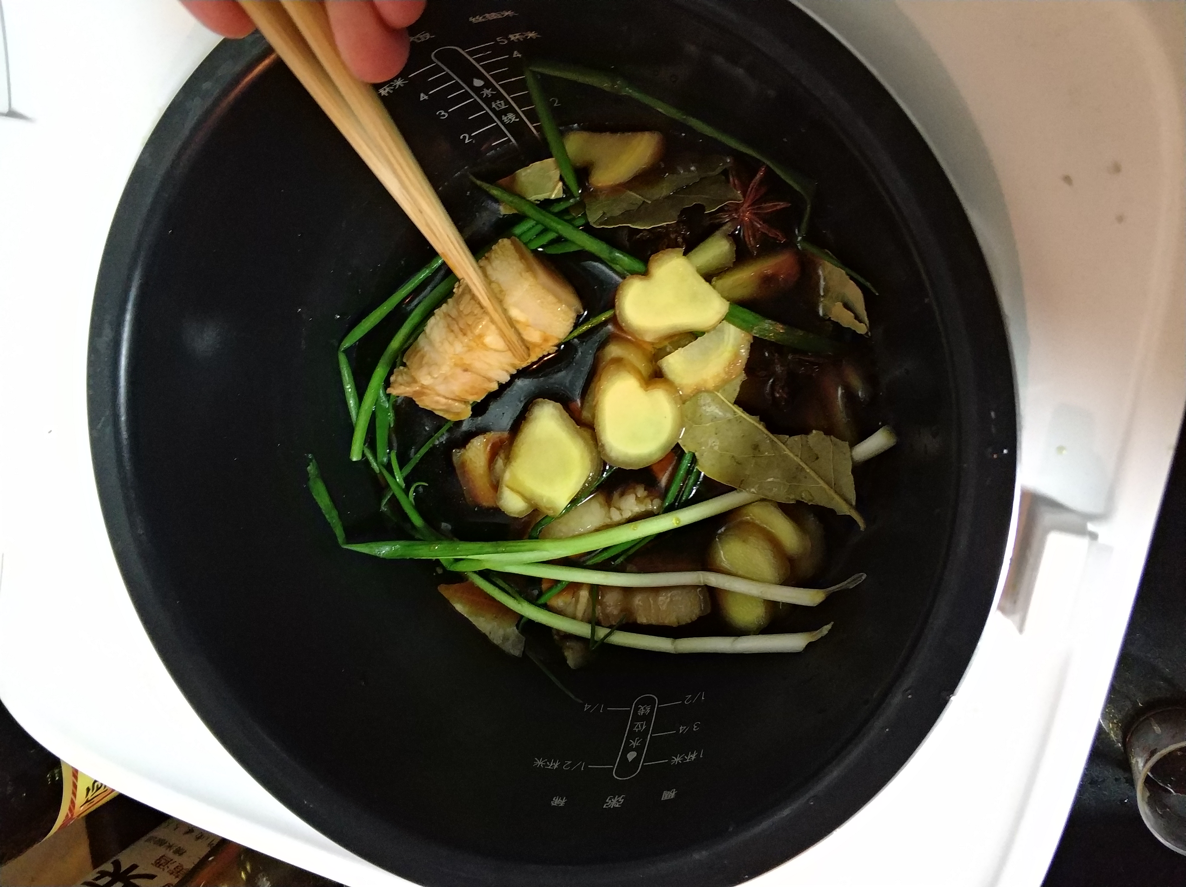 - 炖鸭 参考炖鸡汤的1.5倍菜谱。但是盐只加了4g,另外加了老抽7.5g(有点多)。用锅煮的。不要焯水