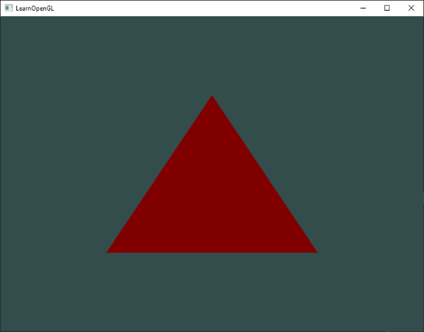 You can see we declared a vertexColor variable as a vec4 output that we set in the vertex shader and we declare a similar vertexColor input in the fragment shader. Since they both have the same type and name, the vertexColor in the fragment shader is linked to the vertexColor in the vertex shader. Because we set the color to a dark-red color in the vertex shader, the resulting fragments should be dark-red as well. The following image shows the output: