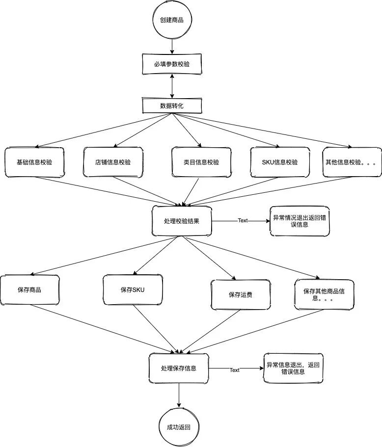 在电商里面处理复杂的业务逻辑场景很多,我们还是以创建商品为列子。很多人可能会问创建商品很复杂吗?我们接着往下看就知道了。