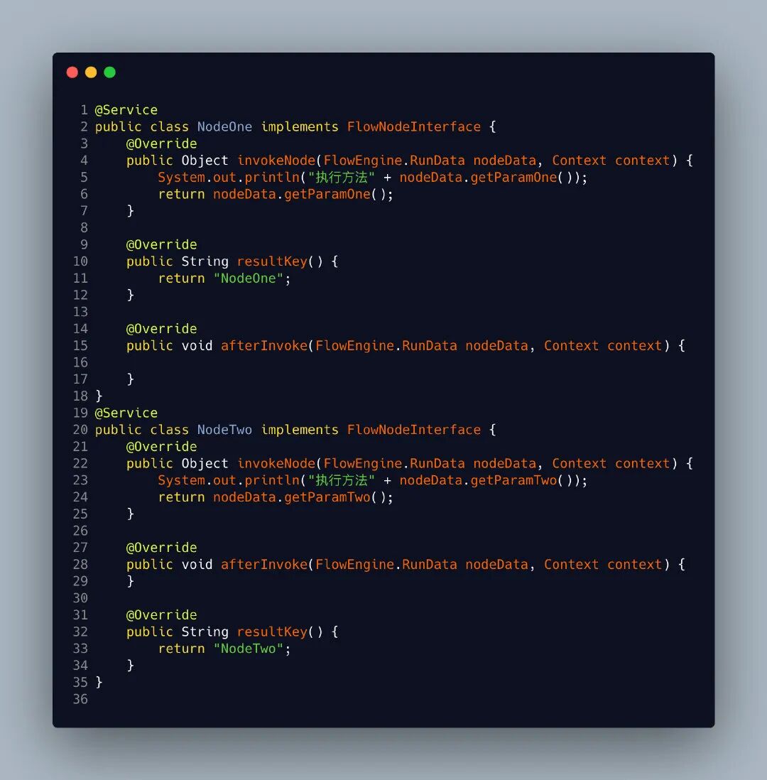 最后当然就是我们的测试结果啦,这里我们创建两个节点NodeOne 和NodeTwo 作为模拟真实业务场景的节点,通过一个后面的three作为一个group 需要并行执行的节点。