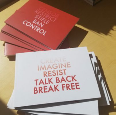 About the book: A Manual for Art Freedom is a flipbook that features tips for recognizing and navigating the many strategies used to silence creative expression. On its flip side and printed upside-down is A Manual for Art Censorship, a tongue-in-cheek guide that takes a look inside the mind of the censor while offering “how to” tips for banning and silencing “offensive” speech.
